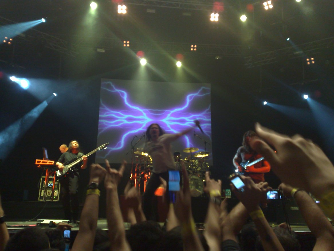 Petrucci ยังอารมณ์ค้างไม่หายถอดสายสะพายกีตาร์ออกแล้วหิ้วกีตาร์เดินมาหน้าเวที แล้วกวักมือเรียกผู้ชมจะให้ขึ้นไปเล่นอีก จะเอาใจกันไปถึงไหนครับเนี่ย แค่นี้ก็คลั่งจนจะไม่มีใจไปรักวงอื่นแล้วนะ